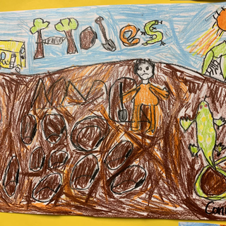 We are reading the novel Holes by Louis Sachar in class. We are really enjoying listening to our teacher read it aloud. We drew illustrated covers. We are looking forward to finishing the book next week and watching the film.