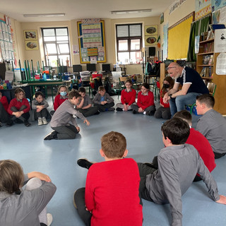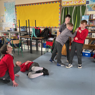 During the workshop images produced by the children were the basis of story creation. A technique called 'freeze and switch' to uncover different starting points for the creation of stories. Within these stories the students also explore how we communicate emotions such as happiness and sadness through different body movements.